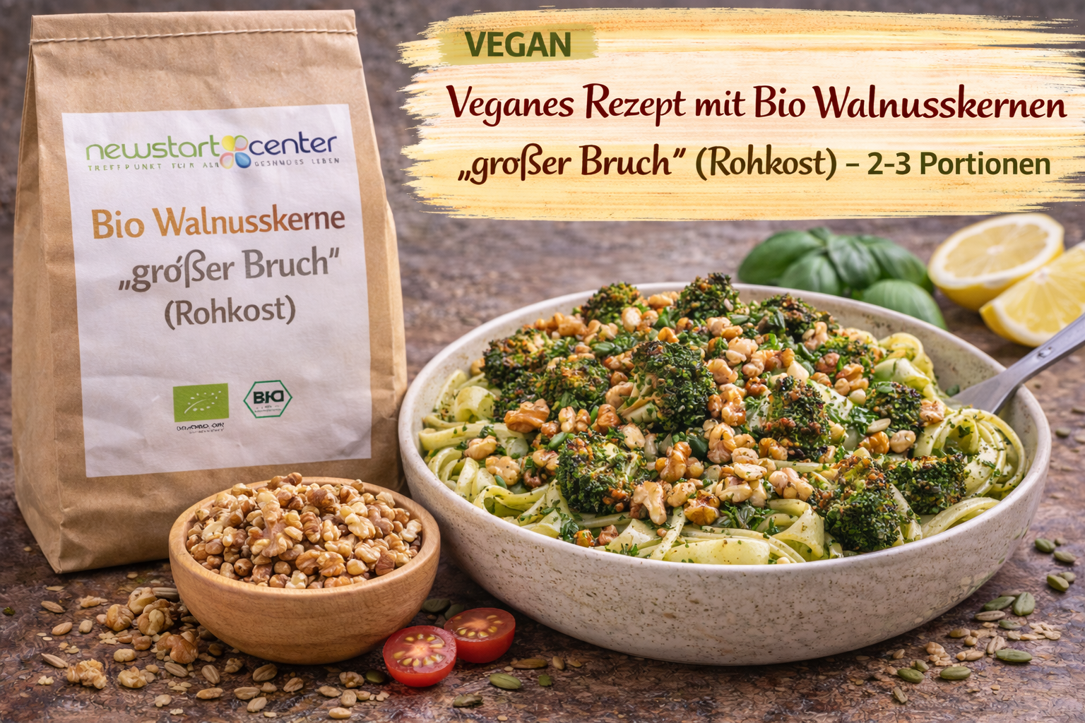 Veganes Rezept mit Bio Walnusskernen „großer Bruch“ (Rohkost) – 2–3 Portionen