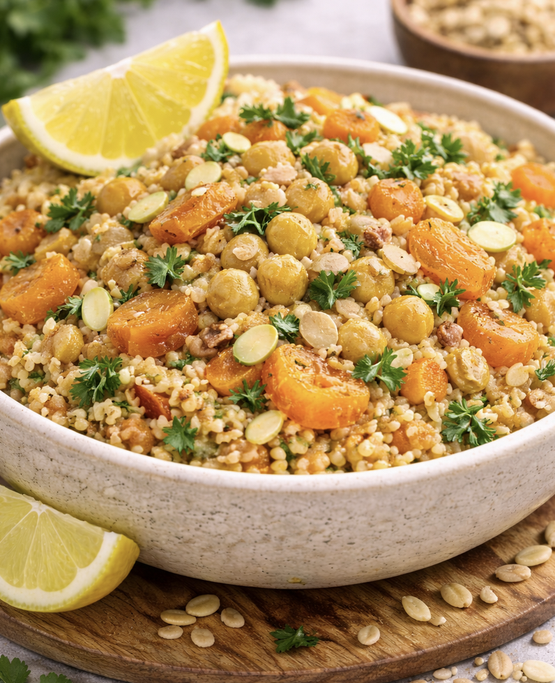 Mischen: Couscous unterheben, mit Zitronensaft abschmecken.
