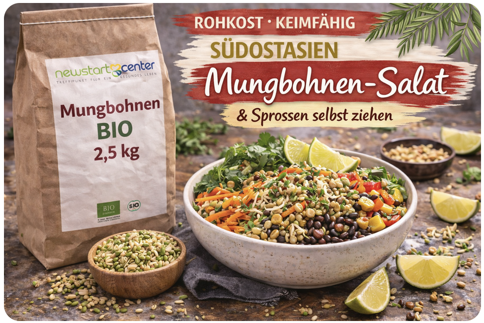 Keimfähiger Mungbohnen-Salat „Südostasien“ (vegan) – mit BIO Mungbohnen (Rohkost, keimfähig) – 2–3 Portionen