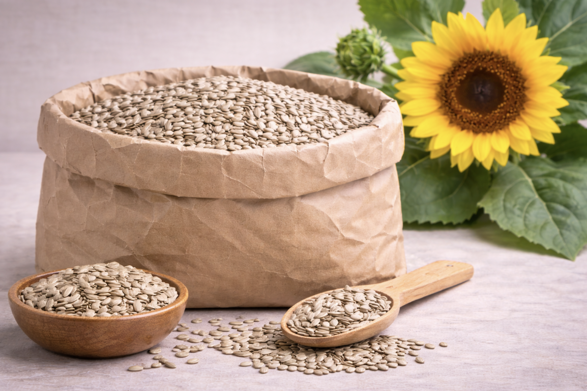 Verwendung: Sonnenblumenkerne eignen sich besonders als Zutat für Müsli, Brot, Kuchen, Kartoffel- und Gemüsegerichte. Leichtgeröstet sind Sonnenblumenkerne eine knackige und schmackhafte Würze z. B. für Salate.