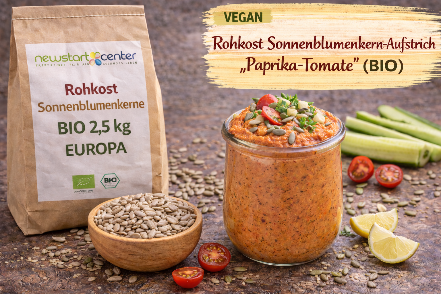 Veganer Rohkost-Sonnenblumenkern-Aufstrich „Paprika-Tomate“ (BIO) – ca. 1 Glas