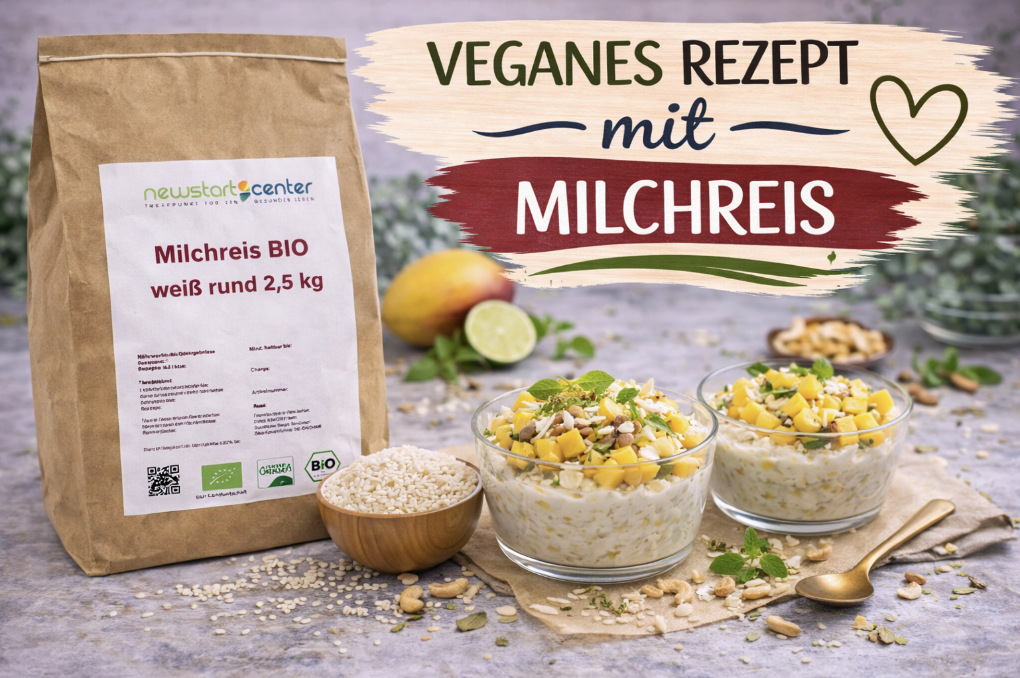 Veganer Kokos-Milchreis mit Mango & Limette (BIO) – 2 Portionen